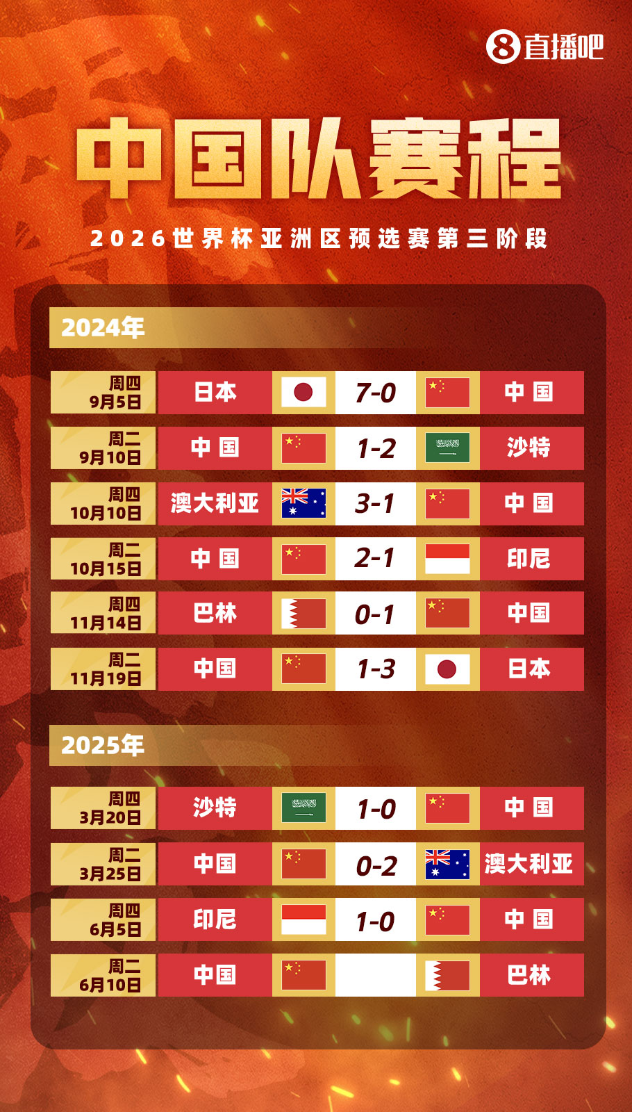 6月5日国足客场0-1不敌印尼,已经提前一轮无缘世界杯。