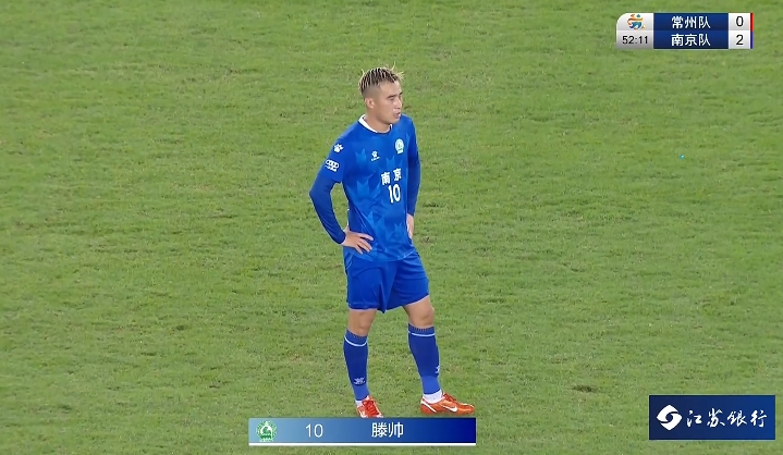 06月21日讯 苏超第5轮,常州队主场vs南京第56分钟,滕帅停球虚晃+抽射一气呵成!5分钟连入两球上演帽子戏法,常州主场0-3南京!