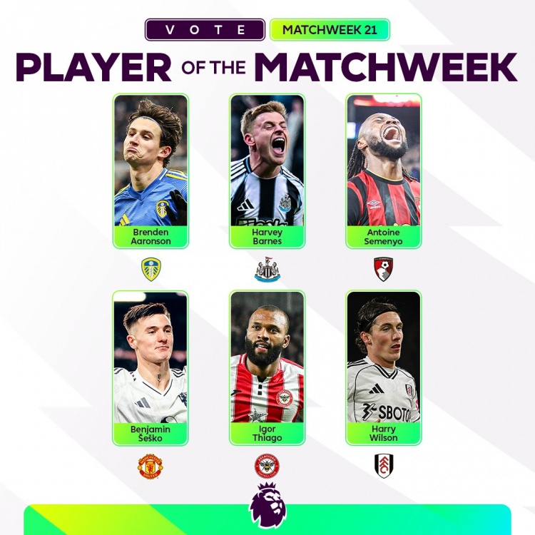 英超第21轮最佳球员候选:塞梅尼奥、舍什科、巴恩斯、伊戈尔在列